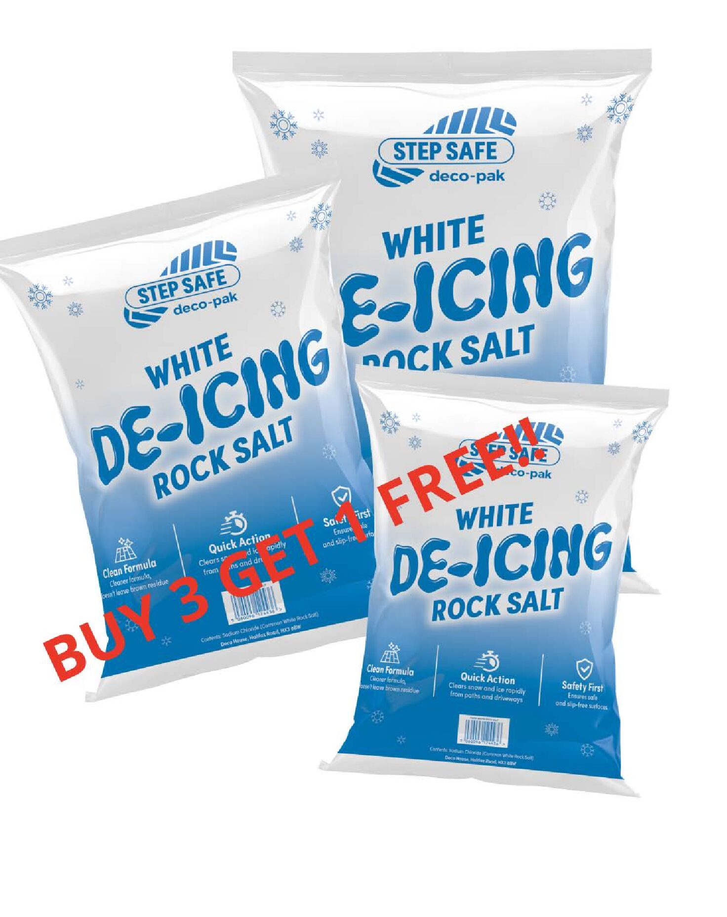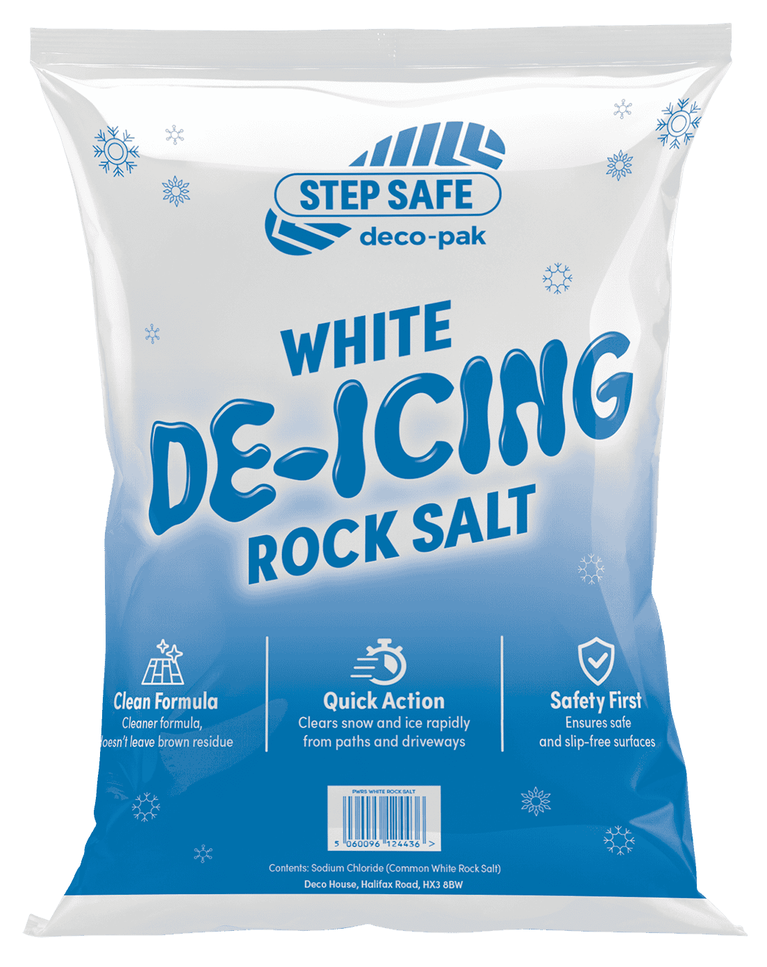 Our premium white salt is a cleaner alternative to brown rock salt, leaving only a small residue if any, after use. It is therefore typically used outside the front of houses, shops and offices. White De-icing salt is great for melting ice and snow. It also prevents ice from forming on paths, patios, driveways, roads and car parks, especially when applied before a freeze or snowfall.